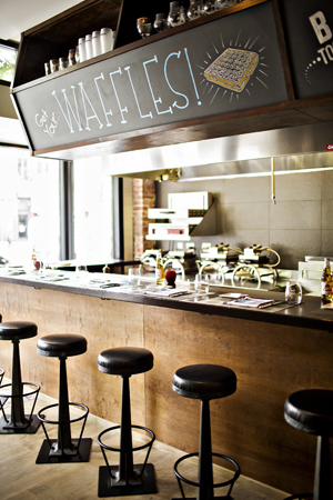 B Too offers a classic Belgian menu item — waffles.